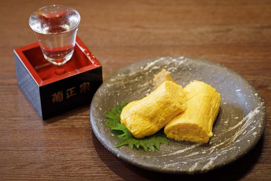 大吉さんの昼のみにおすすめなのが、ふんわりとした口当たりの「だし巻き」、日本各地から取り寄せた地酒です。