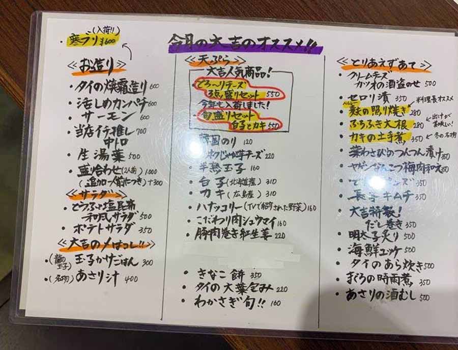 大阪では誰もが知る名店の大吉さん。お店の前にはテレビなどの取材を受けられた際の写真などもたくさんあり、人気の高さがうかがえます。