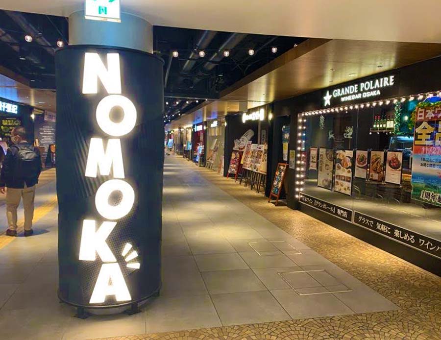 2020年に大阪・梅田の地下街「ホワイティうめだ」のイーストモールに登場した新バル街が「NOMOKA(ノモカ)」です。