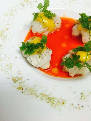 そんな 「Cuccagna(クッカーニャ)」 でいただけるのは、豊かな自然と海に囲まれたシチリア島の豊富な柑橘類や鮮魚が楽しめる料理の数々。わたしたち日本人の味覚にぴたっとハマるのも納得ですね。なかでも 「Cuccagna(クッカーニャ)」 で人気という、「レモンのスパゲッティ」や「ブロンテ村のピスタチオソースパスタ」など、フレッシュな香りを生かしたソースと絶妙なタイミングでゆで上げたパスタとの絡みは秀逸です。シンプルだからこそ真似のできない味わいに、遠方からのリピーターも多いのだそう。