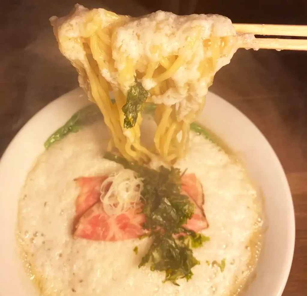 さっぱりヘルシーなことから、女性客も多い 「鳴尾山芋研究所 フラットブッシュ」 。ぜひとろろやあっさりラーメン好きはもちろん、山芋好きな人に訪れて欲しい人気のラーメン店です。カフェみたいなおしゃれなラーメン店でおしゃれなラーメンランチを堪能して見て!