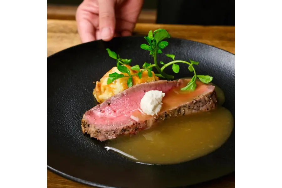 赤身肉なのに絹のような繊細でやわらかく、牛肉のうま味を感じられるのは、ローストビーフに合うというニュージーランド産のストリップロインを使用しているから。繊維質が繊細で肉本来のうま味が凝縮されたお肉なのだそう。
