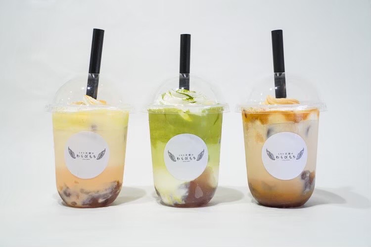 「飲むわらびもち」は、わらびもちを入れたドリンクに、生クリームをトッピングしたドリンク。SNS映えするビジュアルと、ストローで飲む新感覚のわらびもちが話題となり、1日最高450杯販売する人気メニューとなっています。
