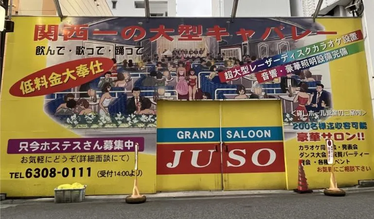 中でも、キャパシティーの大きな店を「グランドキャバレー」と呼ぶ。グランドサロン十三は、延べ床面積約196坪、1階客席だけで170人が座れる広さを誇る。