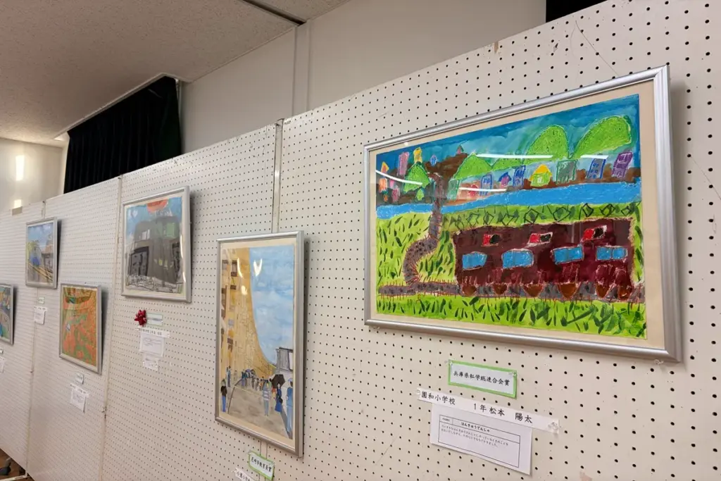 兵庫県私学総連合会賞を受賞した作品は、阪急電車を描いていました。あふれる緑のなかを走る車体のマルーンカラーが目を引きます。