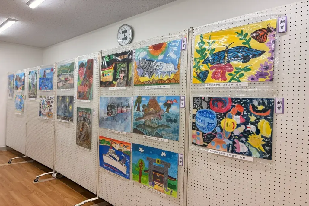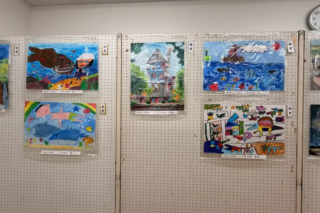 絵画作品は41の小学校から400点の応募があり、そのなかから143点が金賞、銀賞、銅賞、そして入賞作品に選ばれていました。審査員の講評によると「何を感じて描いたのか、そのためにはどの様な材料や用具を使って工夫したのか」などを大切に見られたとのことです。