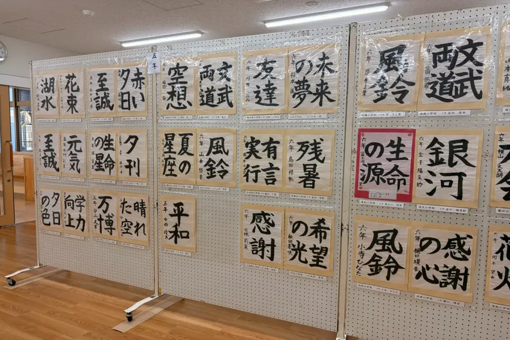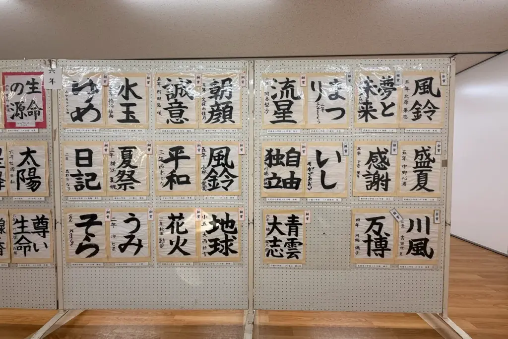 見応えがあって、時間が足りないように感じるほど。審査員の講評にも、高学年の作品はレベルが高く選ぶのに苦戦されたことが記されていました。低学年の作品からは、のびのびと筆を運んだことが伝わってきて、心が和みました。金賞以上の受賞者には表彰式もあったそうです。かけがえのない思い出と自信になりますね。