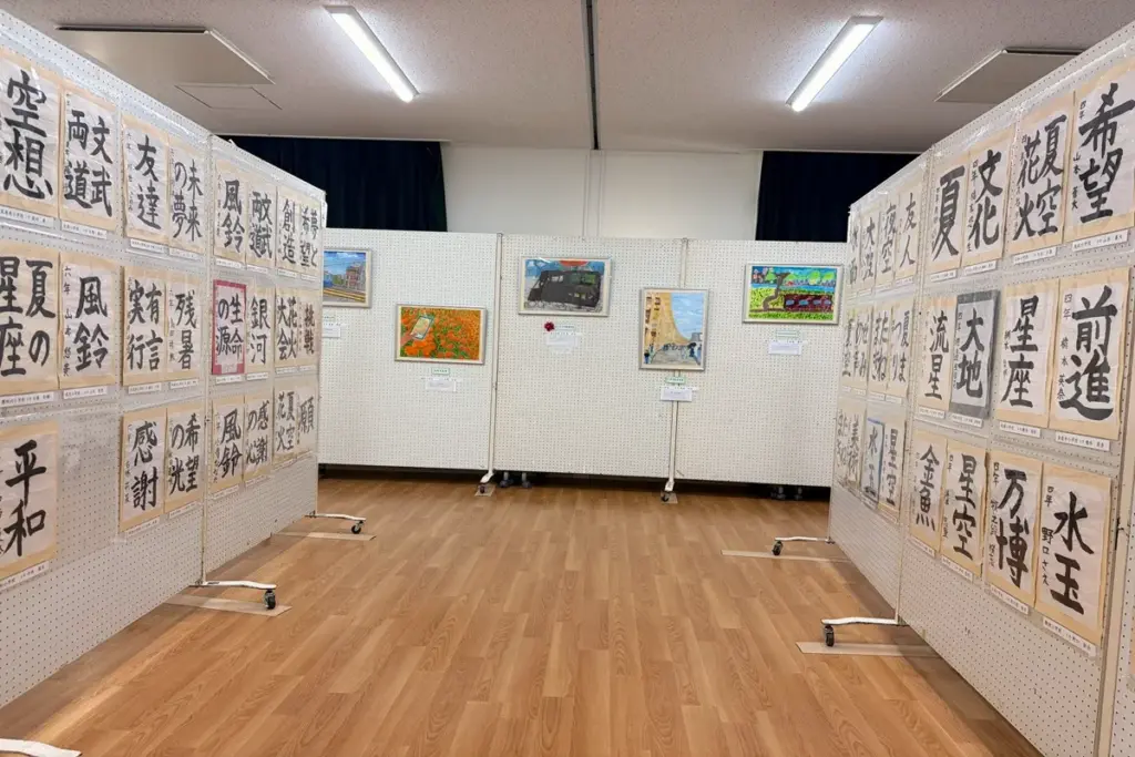 絵画か書道いずれかに応募が可能で、厳正な審査のうえ選ばれた作品群がずらりと並ぶので見応えたっぷり!