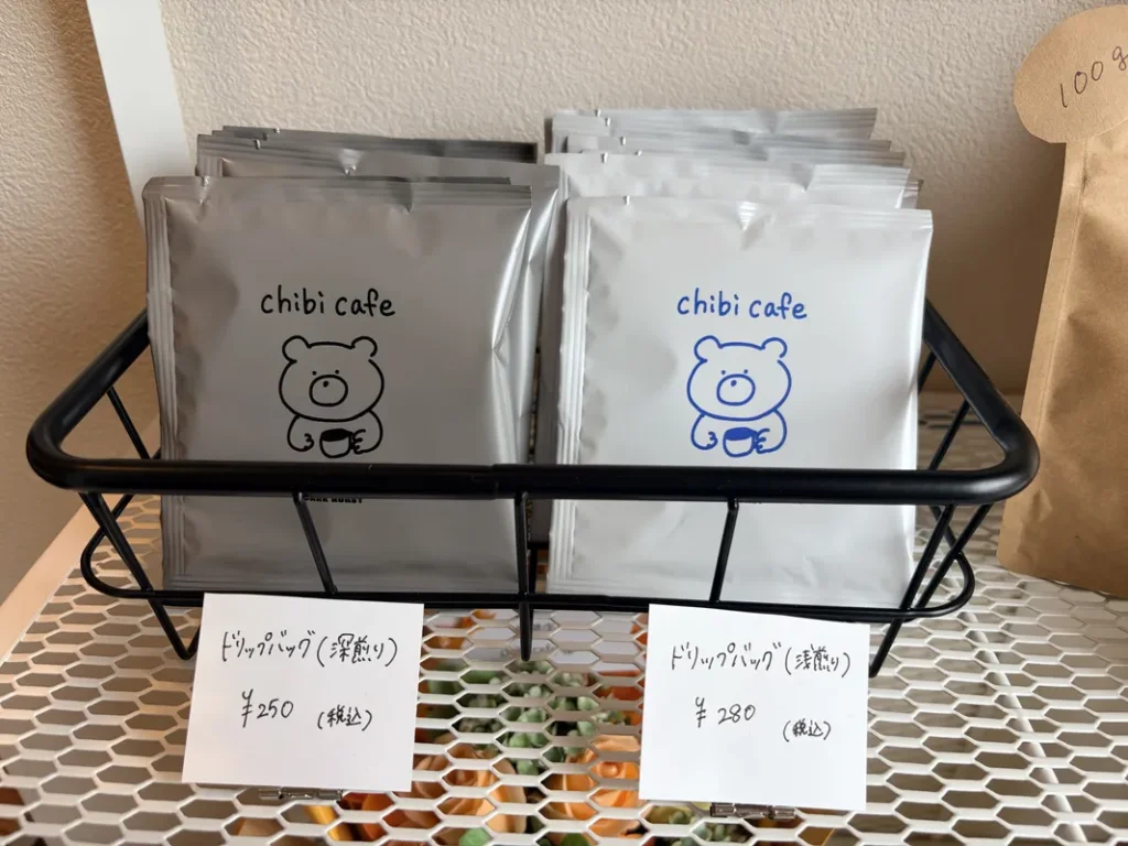苦楽園「TAOCA COFFEE」の豆を使うコーヒーは、深煎りと浅煎りが揃うので気分に合わせて楽しめます。豆は100g、200gを購入することも。さらに4月に入ってchibiくまのロゴ入り「ドリップバッグ」280円も発売されました。かわいいイラスト入りなのでちょっとしたお礼を渡したいときにも重宝しそう。