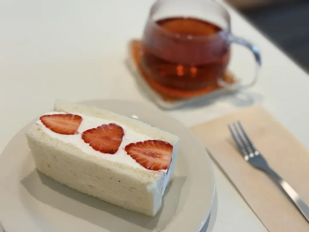 季節ごとに変わるフルーツサンドもすでに人気で、数量限定のため売り切れることも。現在は「いちごサンド」ハーフサイズ650円(写真)、フルサイズ1,200円が味わえます。生クリームたっぷりの一切れにイチゴが盛りだくさん。その次のフルーツは検討中とのことなので、この先も楽しみですね!