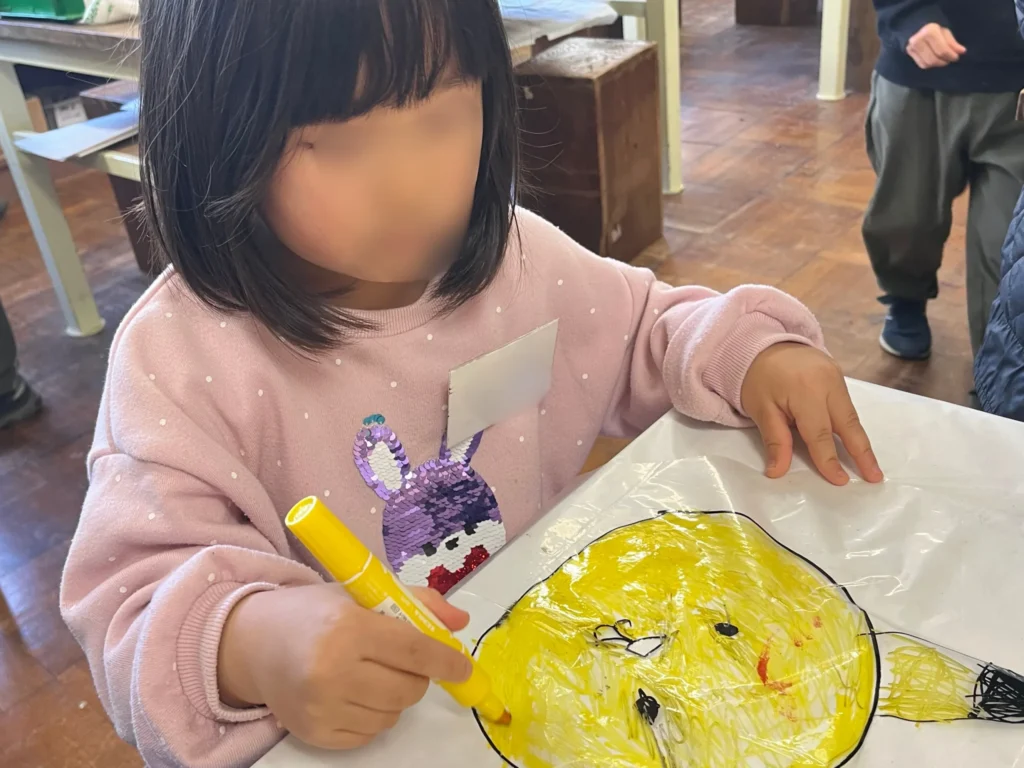 1月だったので、凧揚げを作ったり、木やどんぐりなどを使って動物の置き物を作ったり、参加者がそれぞれに思い思いのものを作っていました。
