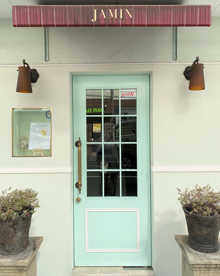 阪急茨木市駅前の喧騒から少し離れたところ、白壁にミントグリーンの扉が印象的なお店が「JAMIN(ジャマン)」です。