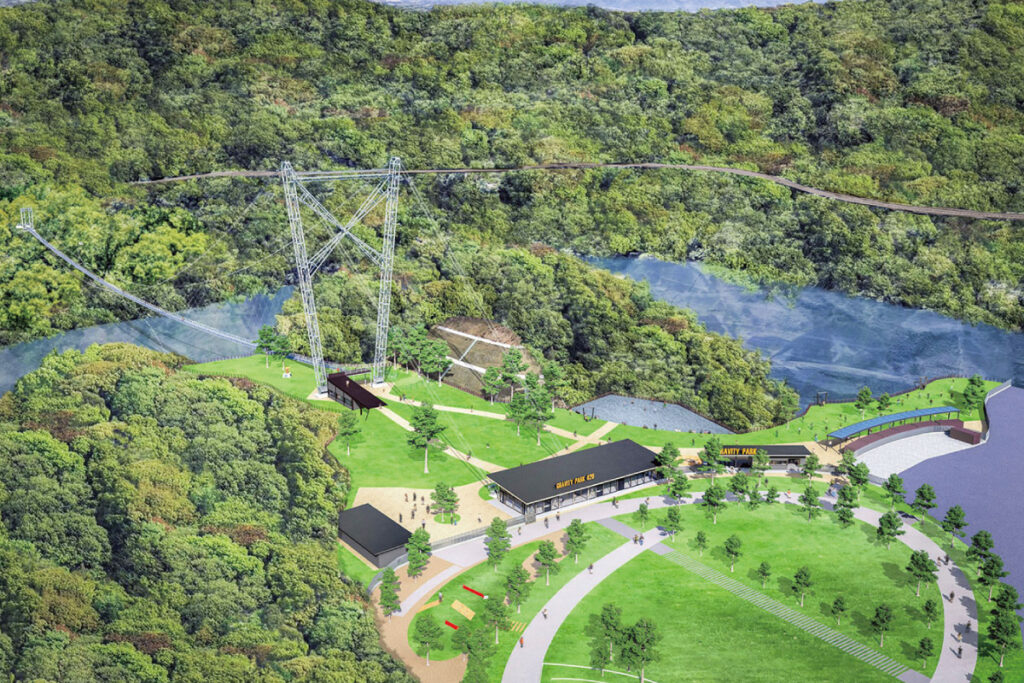 目玉となる日本一長い歩行者専用吊り橋からはダム湖などの壮大な景色を望める。バンジージャンプなどのアクティビティも充実しているので、ぜひ挑戦を! ほかにも飲食店やショップも併設されているので、一日中楽しめる。