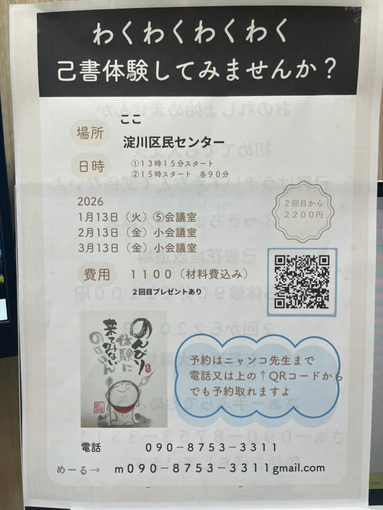 己書(おのれしょ)「花屋敷道場」師範の“ニャン子先生”による己書体験講座は、筆ペン等で自由に文字や絵を楽しむカルチャー講座として人気のある教室。