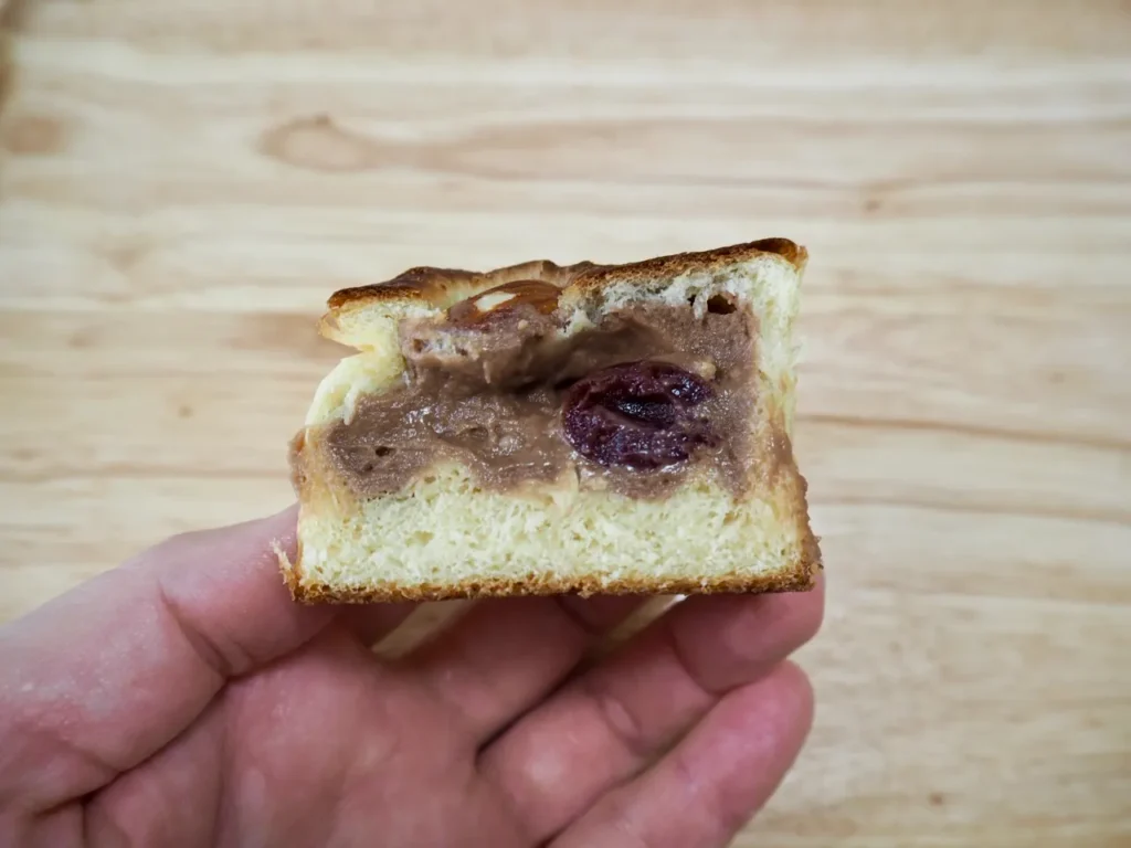 特徴: 少しビターな自家製チョコカスタードクリームにお酒の効いたグリオットチェリーが入ったこちら。オープン当初からの人気商品というのも納得のおいしさです。