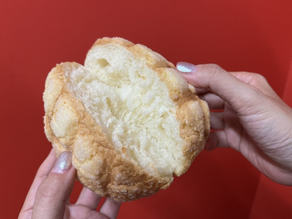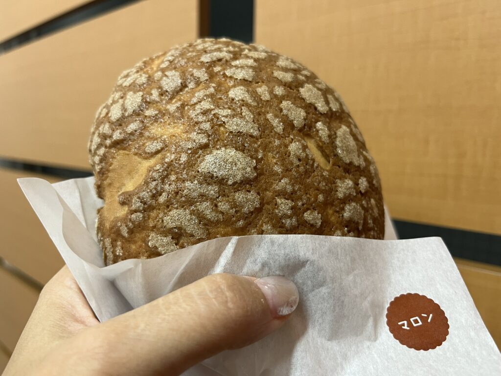 中はふわっふわ、外はサクサクの王道メロンパンで、甘さ控えめ。ボリュームがあるのにペロリと食べられる美味しさです。