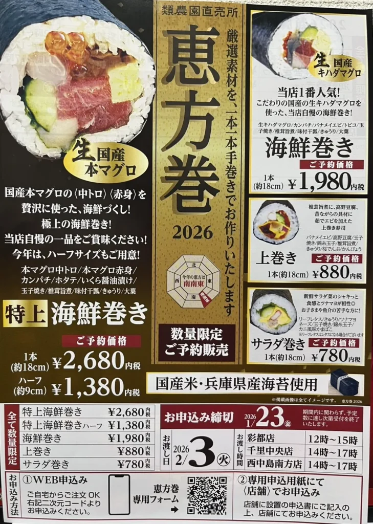 そんな類農園では、現在、厳選素材を手巻きで作る「恵方巻」の予約を受付け中!