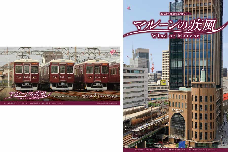 焼田さん渾身の阪急電車の写真が毎月を彩ってくれる人気カレンダー。細部まで再現された車両イラストにも注目を。
