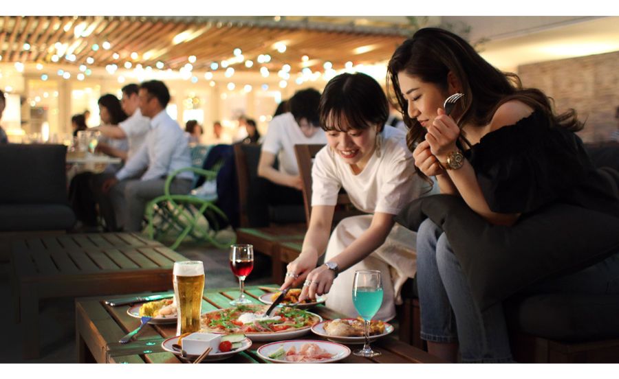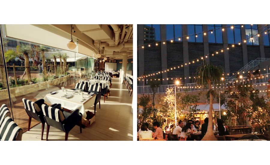 神戸国際会館11階にある「TOOTHTOOTH GARDEN RESTAURANT」では、開放的な星空の下、世界の木々と夜風を楽しめるリゾート感あふれるテラス席と、雨の心配もなく席のどこからでも屋上庭園が望める涼しい店内席を用意。