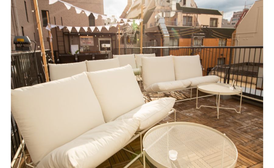 屋上も船の甲板(=デッキ)をイメージしたデザインになっていて、まるで船上でのんびりとソファに座ってビールを飲んでいるかのような気分が味わえます。