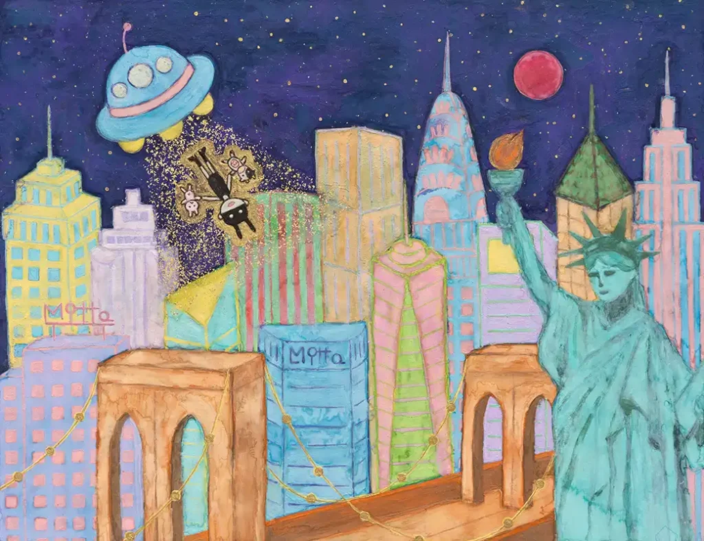 伝統的な日本画の技法に、現代的なポップな感性を融合させた独自のアートを通じて、鑑賞者に「自分の未来をどう描き直すか」という問いを投げかけます。