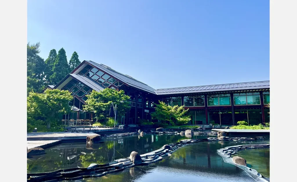 オープンは令和6(2024)年10月。木の温もりと洒落たムードが共存する館の対面には、広々とした芝生エリアが広がります。子どもたちが走り回ったり、ドッグランとして利用できるスペースがあるなど、空気まで澄んで感じられるよう。