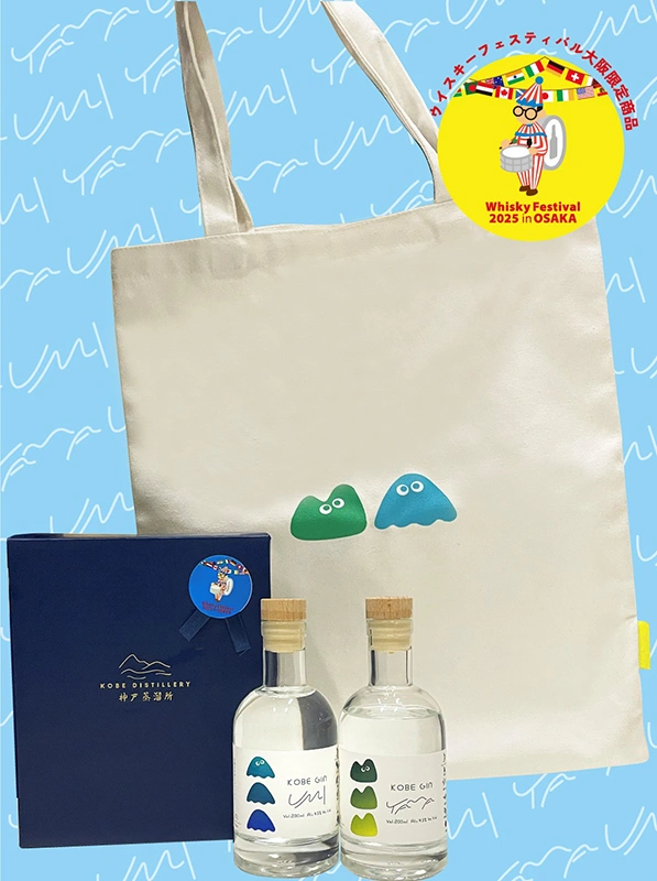 KOBE GIN200ml×2本+神戸蒸溜所とKOBE GINのキャラクターが描かれたトートバックのセット商品です。