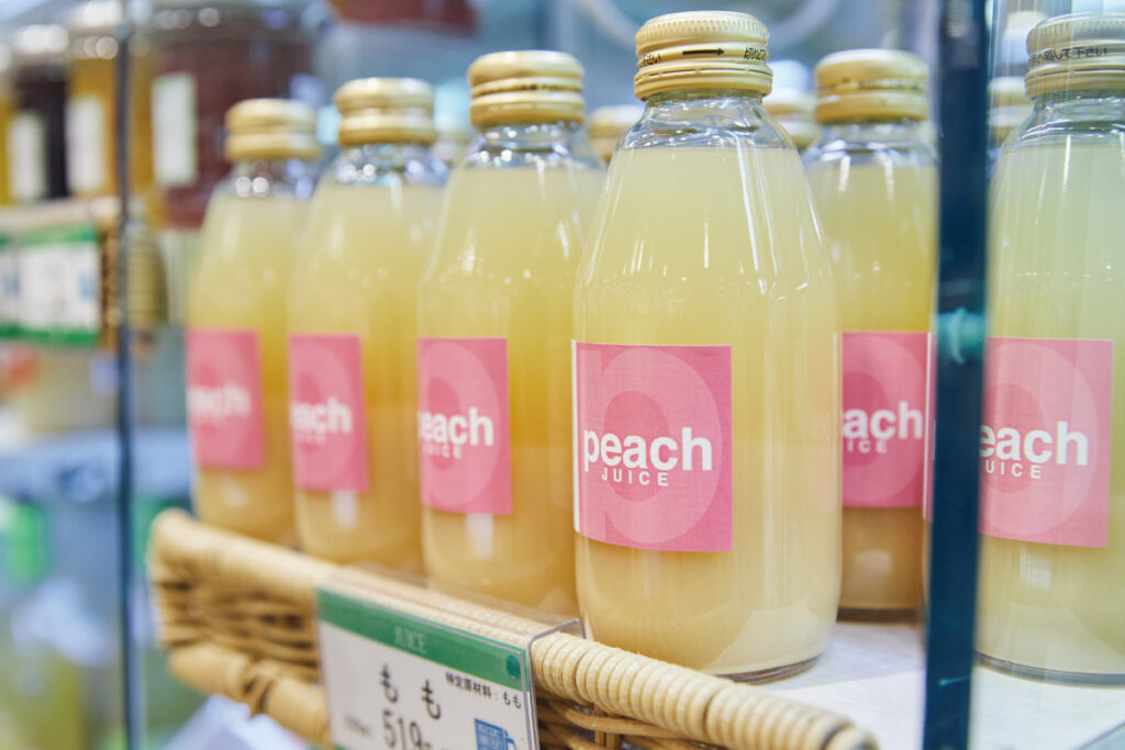地下1階のうめだジューススタンドで作り立ての桃ジュースをいただき、地下2階の店舗では桃のデザートを購入と、阪急うめだ本店内で桃の旬を思う存分楽しんでみては。