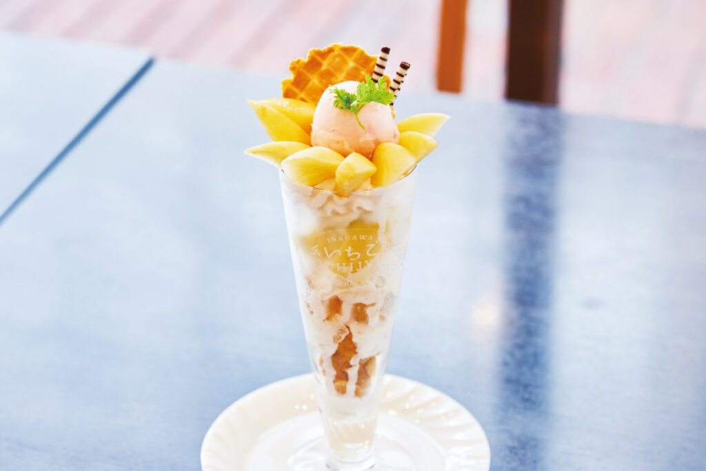 「桃パフェ」/いちご ICHIJYU FRUIT CAFÉ