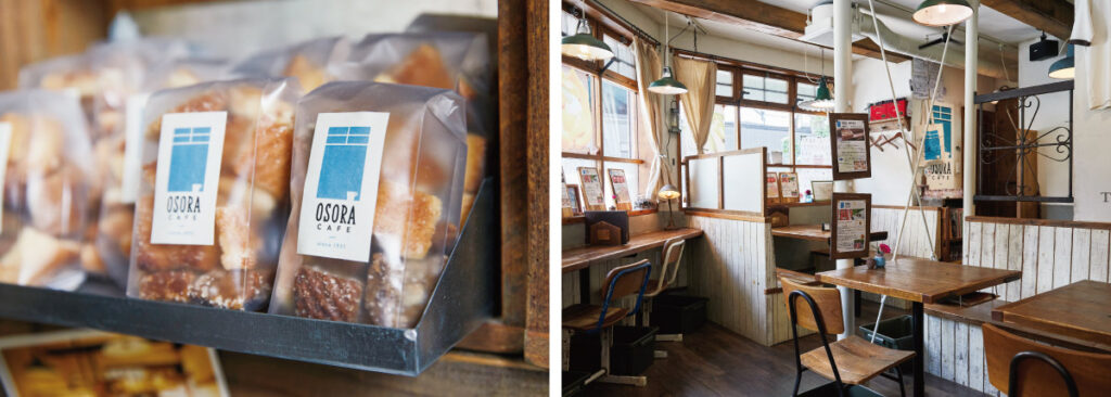 右/青果店時代の建物をリノベーションした店内は懐かしい雰囲気がそこかしこに残る。
