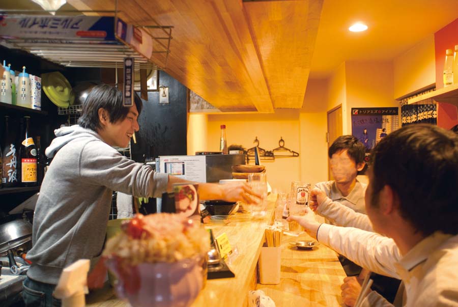十三を愛する店長に惚れた、サラリーマンたちが憩う居酒屋。“忘れられないたこ焼き”を求め、中身がイカの変わり種に到達。「たっぷりのネギと高級卵の黄身を乗せるトッピングで元気が出る」と、常連も太鼓判。