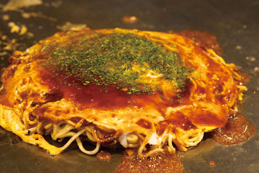 神戸市長田の伝統の味・長田風お好み焼きが名物。牛スジとコンニャクを甘辛く炊いた「ぼっかけ」やキャベツなどを重ねて焼き上げるのが特徴だ。長田発祥でほど良い酸味が魅力の「ばらソース」や、オリジナルのガツンと辛い「ドラソース」などで自分好みに味つけしよう。