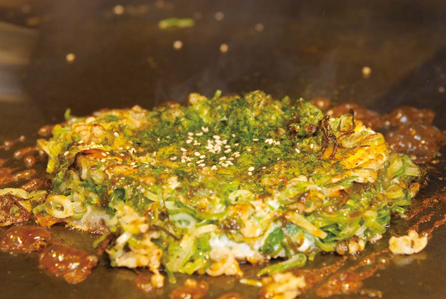 広島県のお好み焼きの名店で修業した店主が腕を振るう。キャベツの甘味を最大限に引き出す熟達の蒸し焼きは、本場広島の味そのもの。使用するそばも、広島の有名製麺所「磯野製麺」から仕入れるなど、こだわりもピカイチだ。九条ネギと豚バラのうまみ豊かな「とんぺい焼き」も絶品