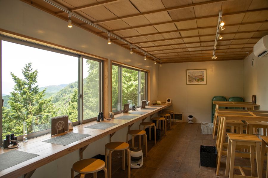 テラス席は全部で約20席ですが、店内にも横並びのカウンター席があって、こちらからも美しい山の景色を眺めることができます。