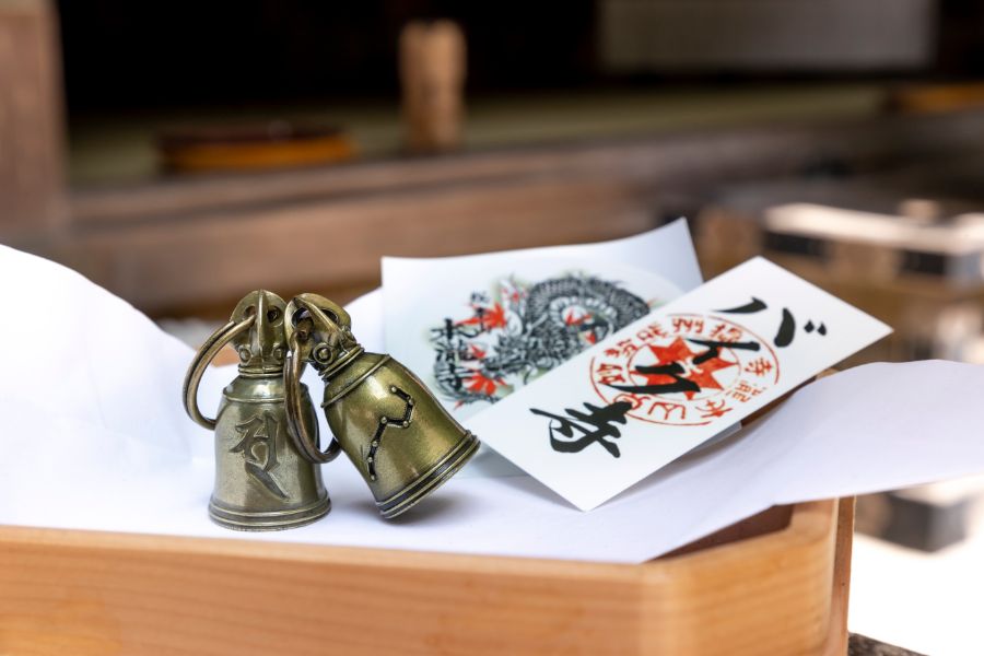 鈴の表と裏には、妙見菩薩を一文字で表した梵字と北斗七星が彫られています。本堂で祈祷もされていて、交通安全のお守りとして人気です。