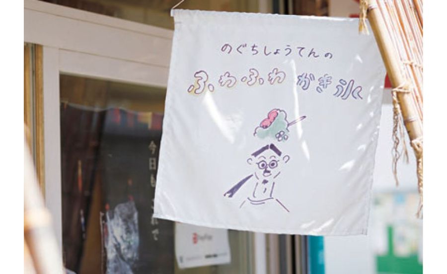 知り合いのデザイナーさんが描いたという、店主・野口さんのあたたかみのある似顔絵がのれんに。地元の子どもたちや中高生も立ち寄る憩いの場。