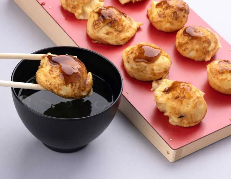 たこ焼きの香ばしさと、明石焼きのやさしい味わいのいいとこ取り! ついついクセになる不思議な美味しさを、ぜひ体感してみて。