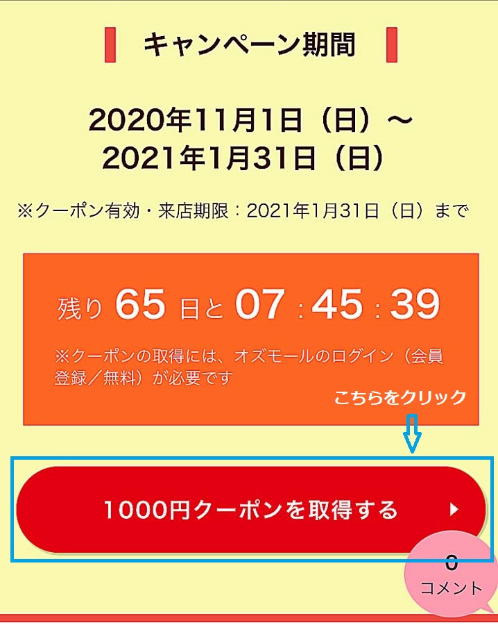 画面内の【クーポンを取得する】を必ずクリックしてくださいね!