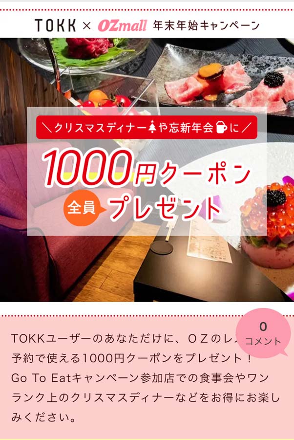 阪急沿線情報紙TOKKと、グルメ、ビューティー、トラベルなどのお出かけ情報を発信するWEBメディアOZmall(オズモール)との共同企画、Prime Restaurant(プライム・レストラン)。
