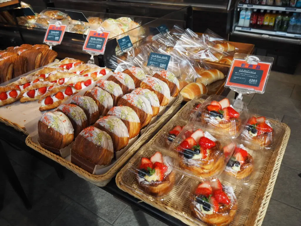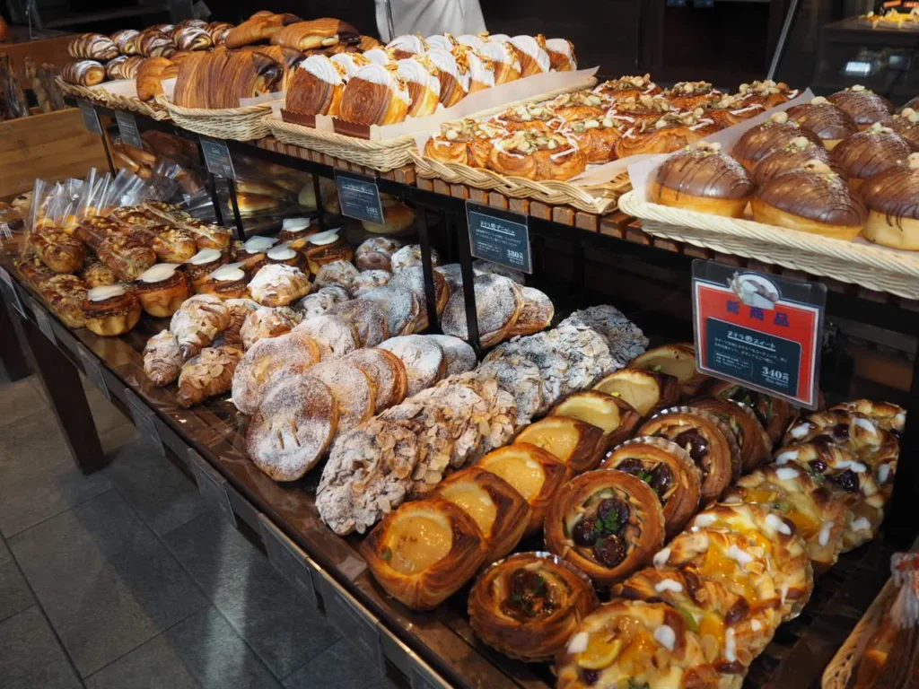 定番のクロワッサンなどハード系からスイーツ系まで、焼きたてのパンが所狭しと店内に並んでいます。価格帯は200円~300円台が中心で、今回の購入分の平均価格は360円ほどでした。