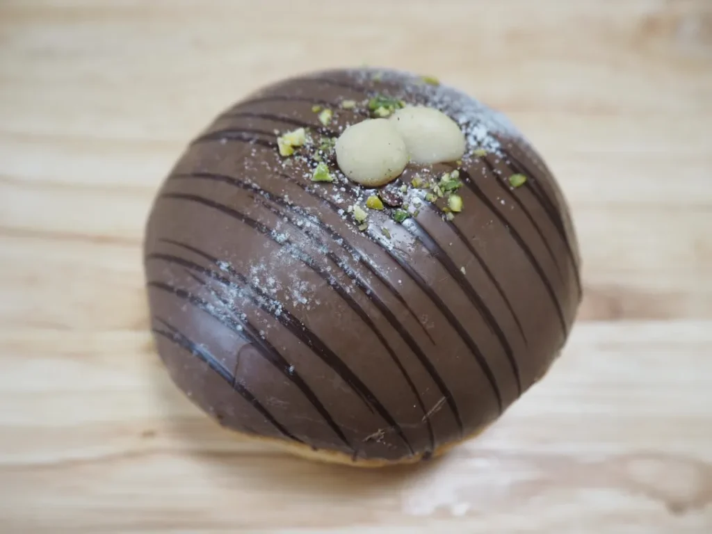 特徴: スイーツ生地にヌテラ(イタリアのフェレロ社が製造・販売する、ヘーゼルナッツペーストをベースにしたココア入りのスプレッド)をコーティングし、中に入れた塩ナッツ、ダマンドと楽しむ一品。ヌテラとナッツの相性はもはやスイーツですね。