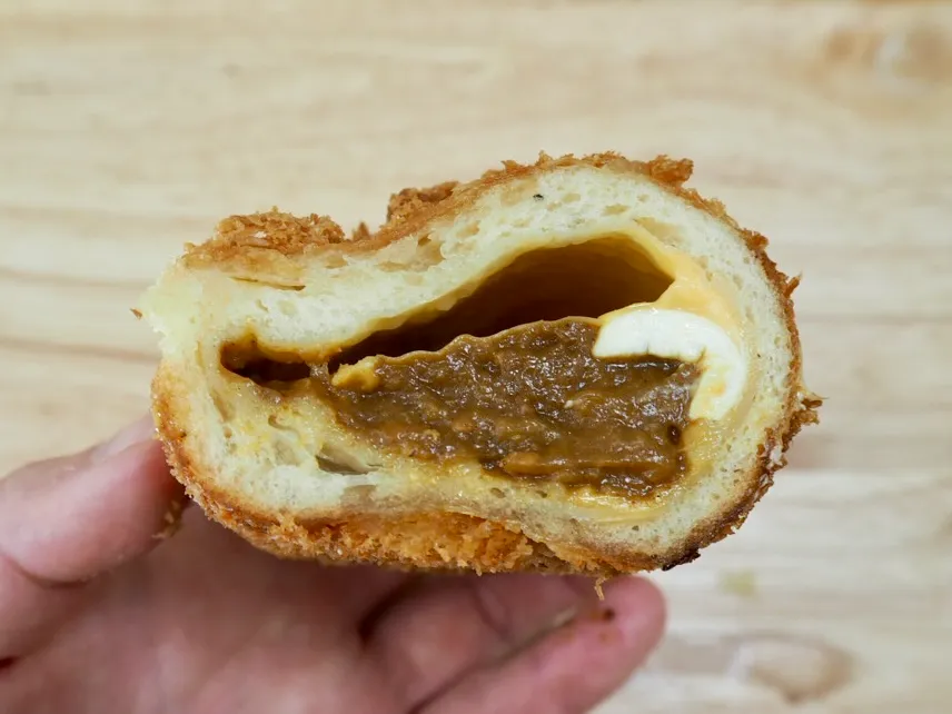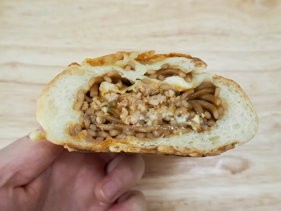 特徴: 焼きそばパンはよく見かけますが、肉みそ入りは珍しいのではないでしょうか。肉みそが良いアクセントになって味を引き締めてくれています。