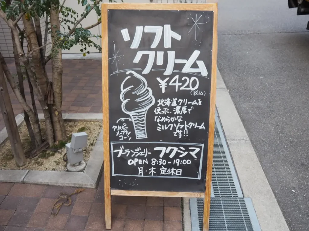 ブーランジェリー フクシマ(Boulangerie FUKUSHIMA)は、シンプルで美味しく、質の高いパンとお菓子をひとつひとつ丁寧に手作りすることをコンセプトに天満橋で営業されている人気ベーカリー。商品は季節やシェフの気まぐれで変わることがあるそうですので、定期的に通いたくなりますね。また店の前に看板が出ていましたが、北海道クリームのミルクソフトクリームも販売されているので、今度食べてみたいと思います。