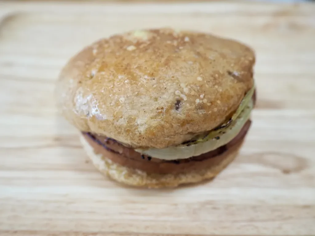 特徴: 焼き玉ねぎとソーセージをサンドした、バルサミコソースが効いた食べ応えのある一品です。
