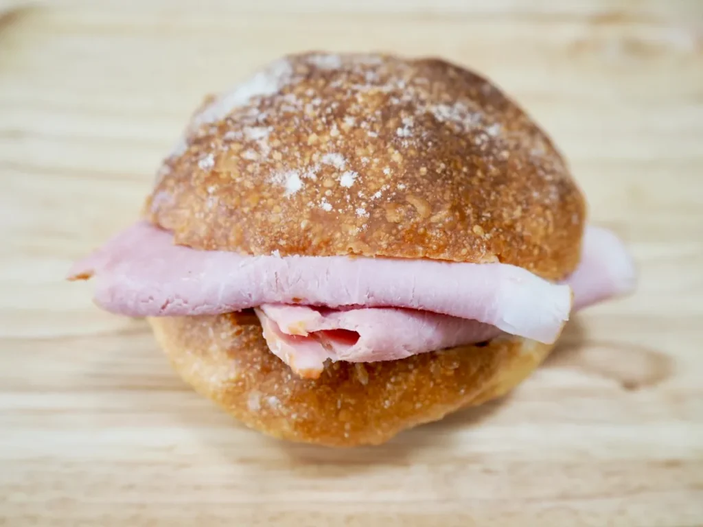 特徴: 自慢の「バターがおいしいフランスパン」にスモークしたハムと粒マスタードがサンドされた味わい深い一品です。
