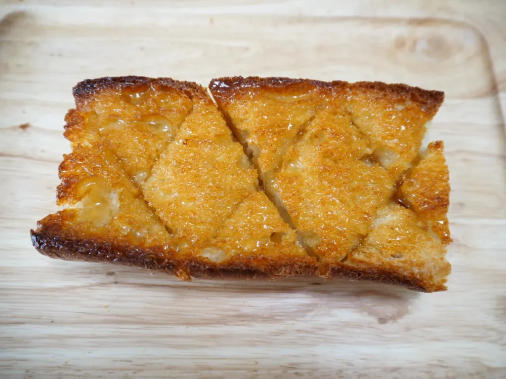 特徴: バゲットにバターとカナダ産のメイプルシロップを乗せ焼いたボリューミーな一品です。