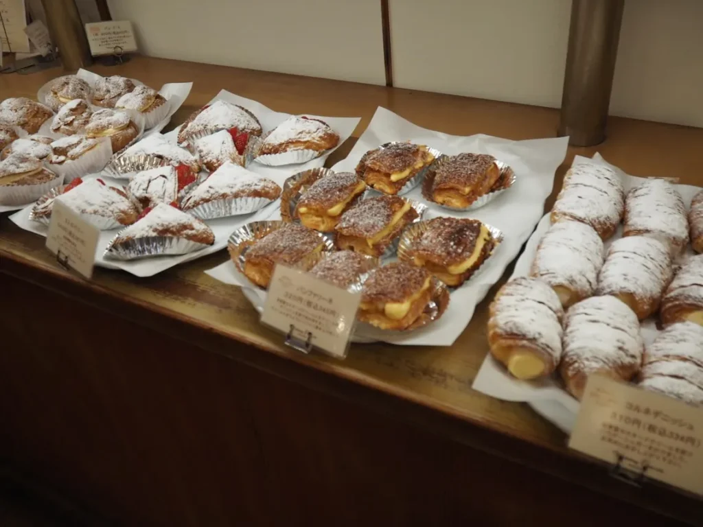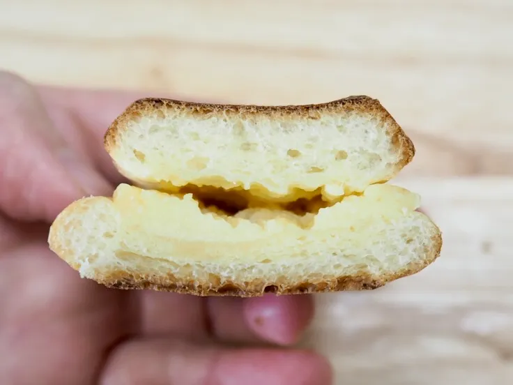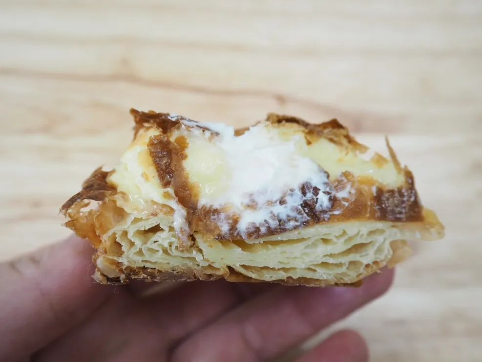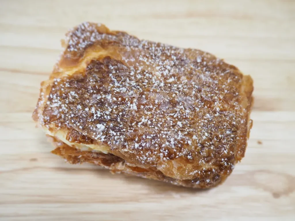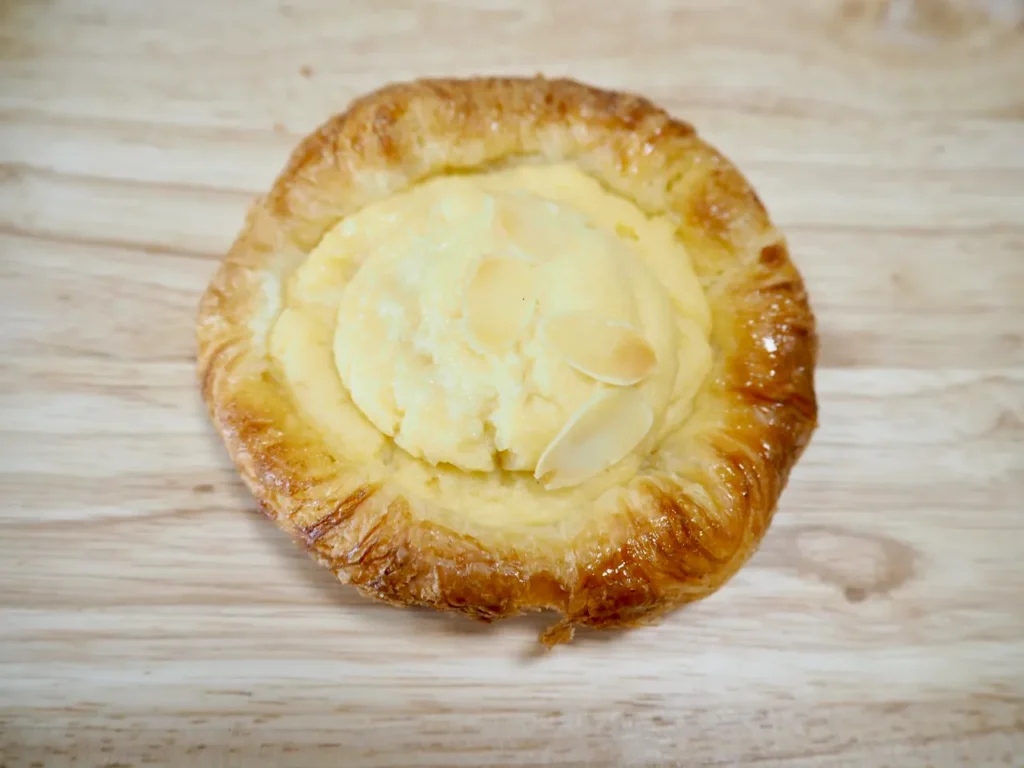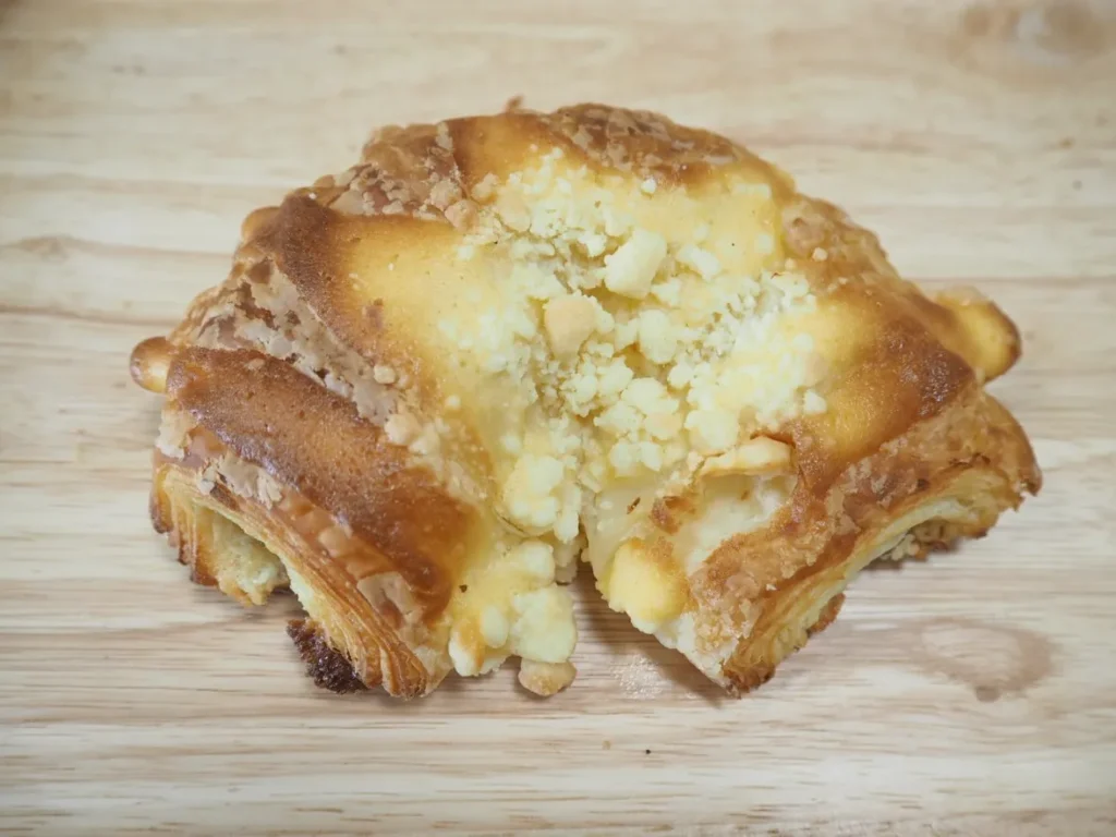 特徴: 自家製カスタードクリームと生クリームをデニッシュ生地でソフトに包み焼いた一品。シュークリームのようなスイーツ感覚で楽しめます。