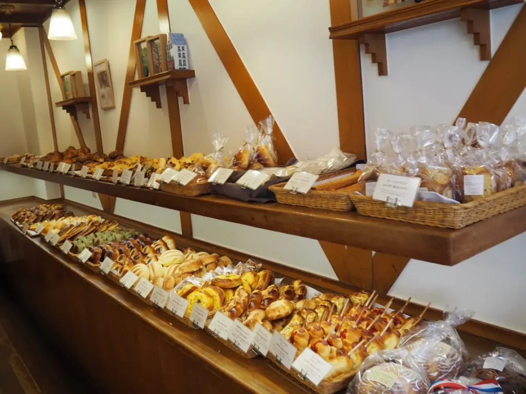 マリーフランス(Marry France)北山店は、長らく地元の方に愛されるかわいいベーカリー。自家製にこだわり、生地はもちろん、粒あん・カレーフィーリング・カスタードクリームやバタークリームもすべて自家製なんだそうです。ネット販売もされていて、人気の粒あんは店舗販売とネット販売を合わせて毎日約450個とのこと。チェックしてみてください。かわいいトートバッグも販売されています。