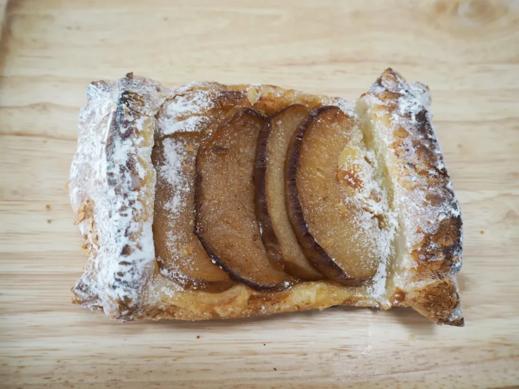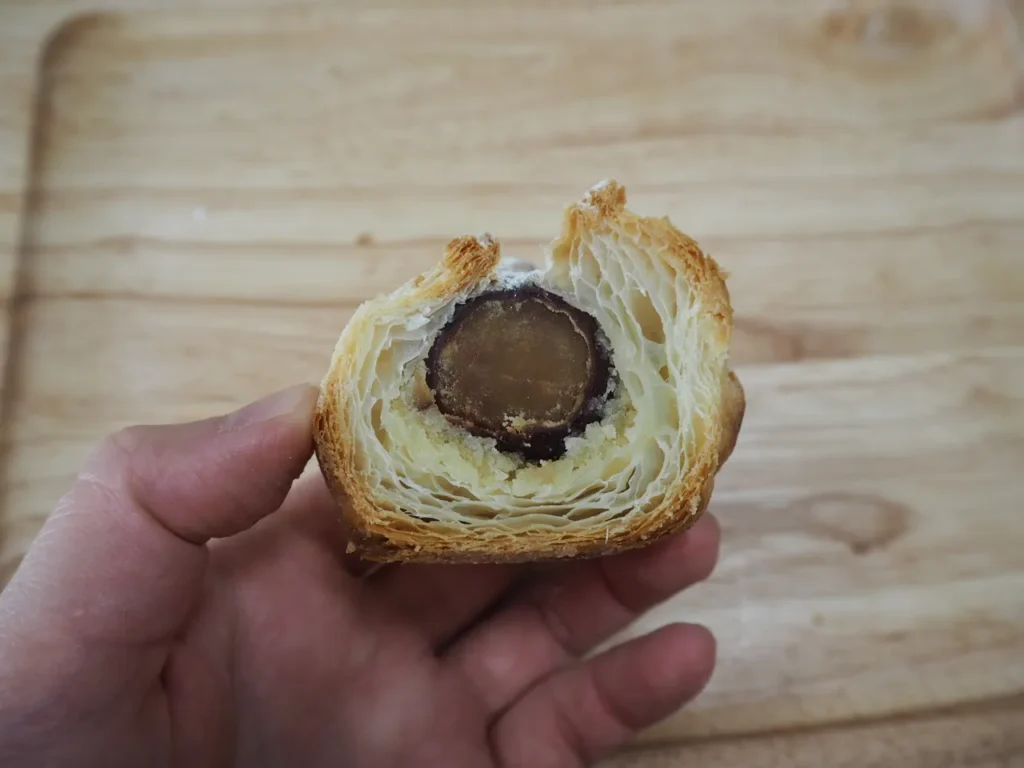 特徴: サクサクのパイ生地にアーモンドクリームと渋皮栗を入れて焼き上げた一品。栗がゴロっと入っていて、小さめですが食べ応えがあります。