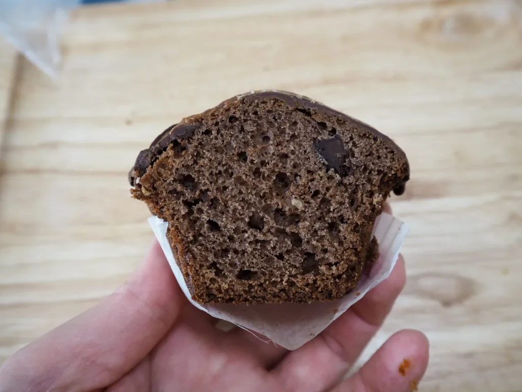 特徴: ココア生地のマフィンにたっぷりチョコレートが入ったスイーツ感覚の一品。チョコなので甘いですが、サクサク食べられます。